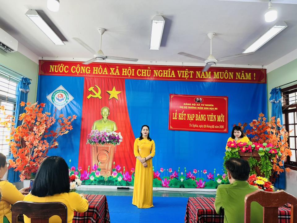 Ngày 19/03/2026, Chi Bộ Trường Mầm Non Hoạ Mi tổ chức trao Quyết định kết nạp đảng viên mới. Đồng chí Phan Thị Hậu – Bí thư Chi Bộ, Hiệu trưởng trường Mầm non Hoạ Mi chủ trì buổi Lễ.