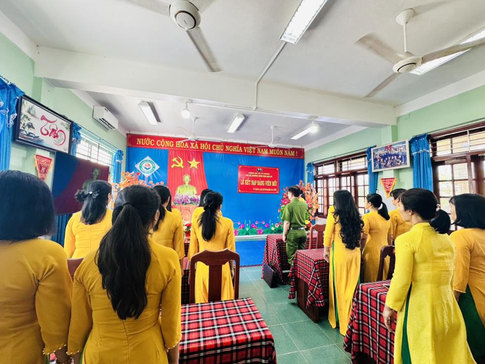 Trong không khí trang nghiêm, đúng nghi thức Điều lệ Đảng, đồng chí Bí thư Chi bộ đã công bố và trao Quyết định kết nạp Đảng viên mới cho quần chúng ưu tú: Võ Thị Thúy Hằng – giáo viên trường mầm non Hoạ Mi. Trước cờ Đảng, cờ Tổ quốc và chân dung Chủ tịch Hồ Chí Minh, Đảng viên mới đã tuyên thệ, bày tỏ niềm vinh dự, tự hào khi được đứng vào hàng ngũ của Đảng, đồng thời hứa sẽ tiếp tục rèn luyện phẩm chất đạo đức, nâng cao trình độ chuyên môn, hoàn thành tốt mọi nhiệm vụ được giao.