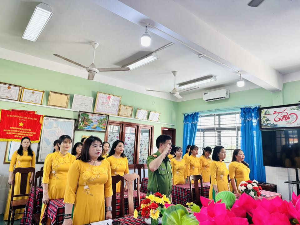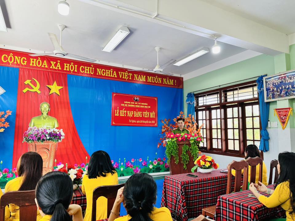 Phát biểu tại buổi lễ, đại diện lãnh đạo cấp xã đồng chí Trần Định – Uỷ viên Ban thường vụ Đảng Uỷ, Trưởng công an xã Tư Nghĩa, Tổ trưởng tổ công tác số 7, ghi nhận những nỗ lực của Chi bộ nhà trường trong công tác bồi dưỡng, tạo nguồn phát triển Đảng, đồng thời mong muốn các Đảng viên mới tiếp tục phát huy tinh thần tiên phong, gương mẫu, góp phần xây dựng Chi bộ ngày càng trong sạch, vững mạnh, cùng tập thể nhà trường hoàn thành xuất sắc nhiệm vụ giáo dục.